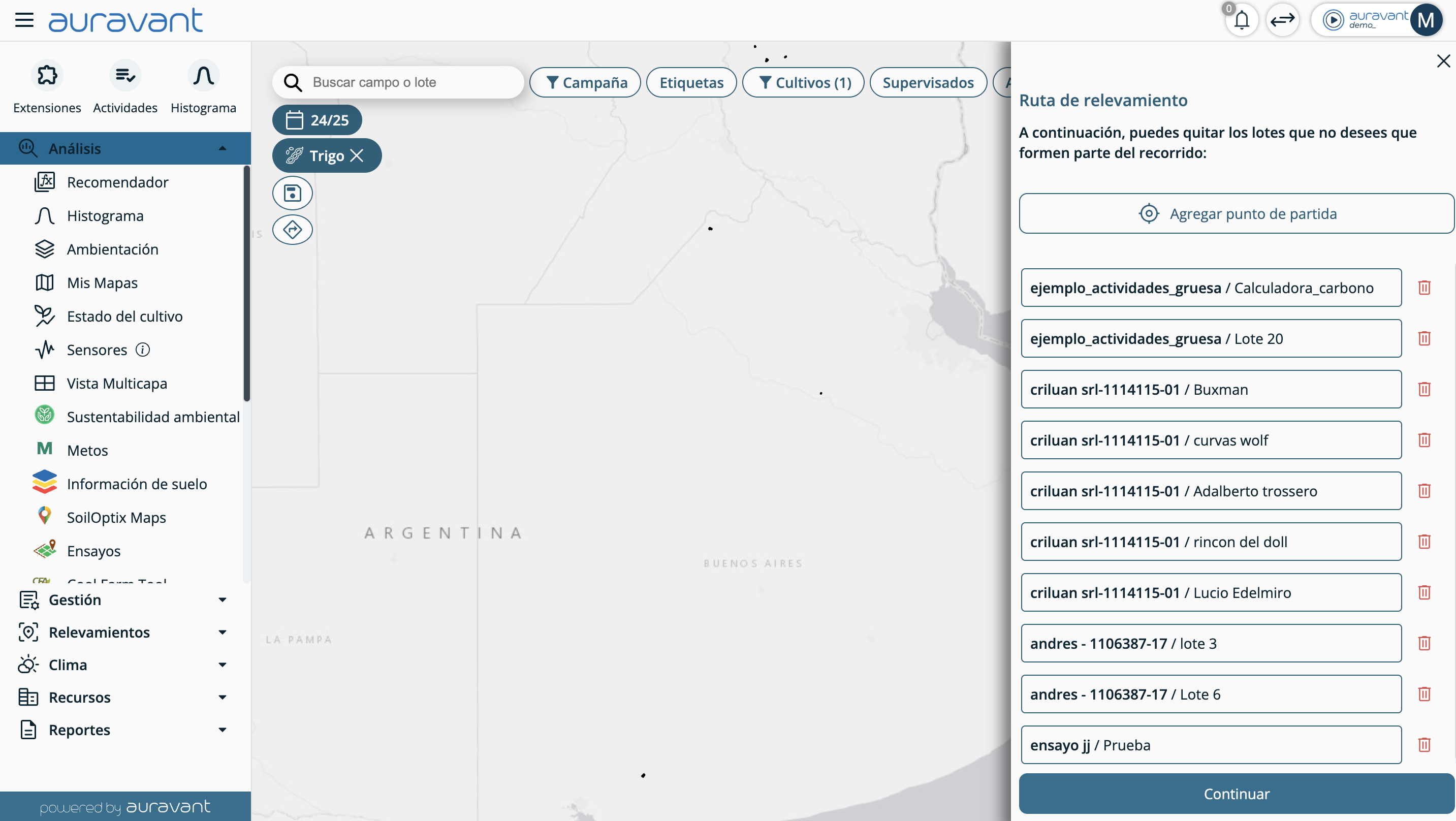 - Seleccionar los lotes que querés visitar filtrando por campo, nombre de lote, campaña o estado.