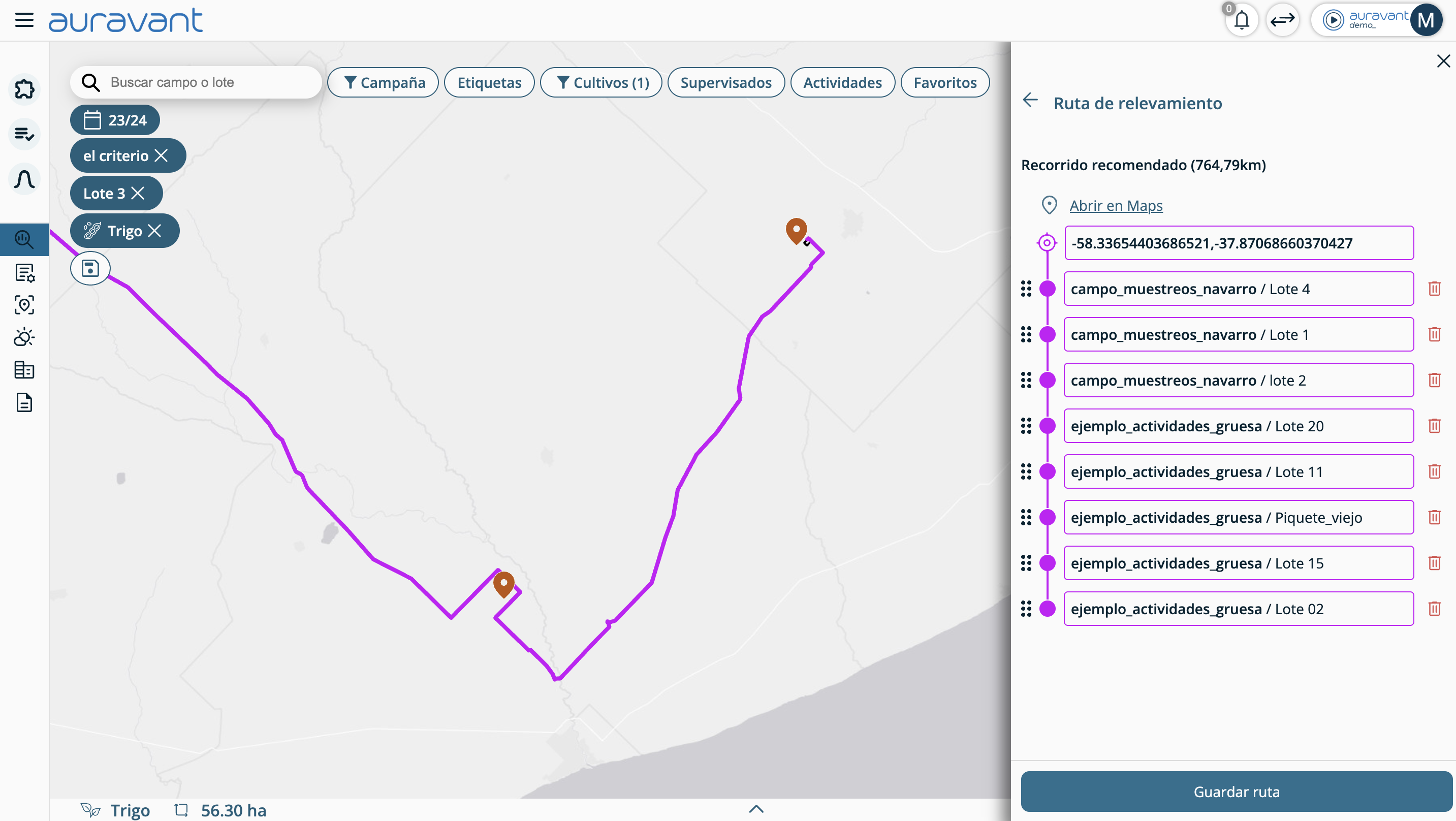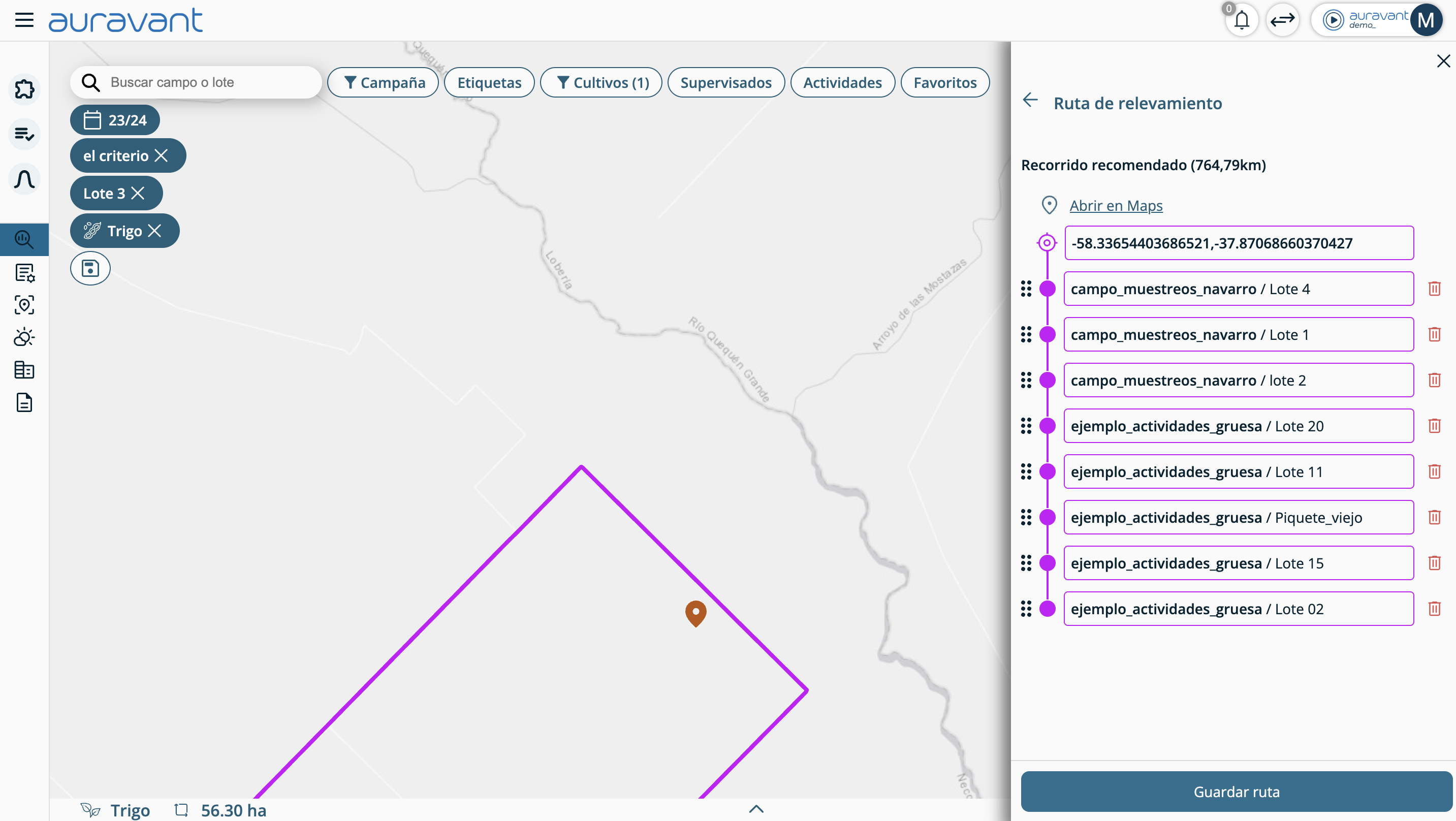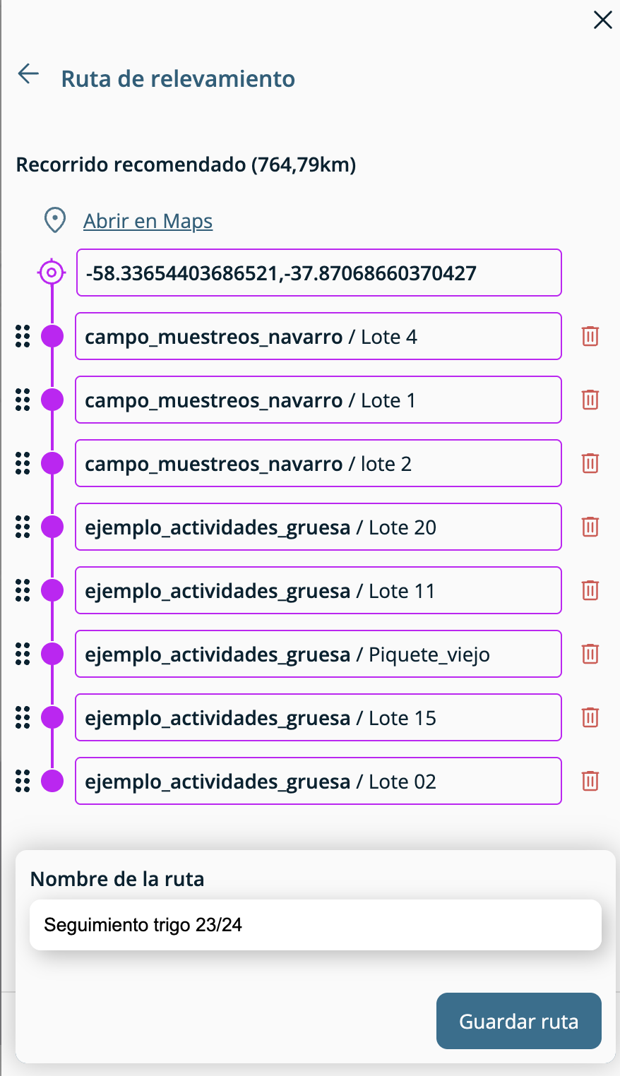 Finalmente, si querés conservarla, hacé clic en “Guardar ruta”, asiganale un lote y lsito. V