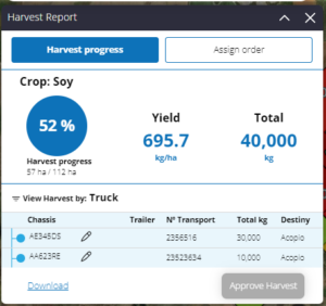 This tool not only enables improved communication between the administrative and operational sectors overseeing the harvest, but also reduces data entry errors, increases control over dispatched trucks, and streamlines the management process by having all the information entered in one place.