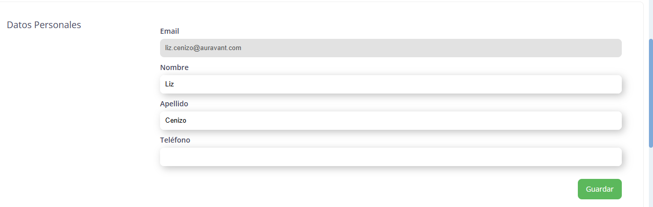 2. Na secção “Dados pessoais” encontrará a informação do seu Email, Nome, Apelido e Telefone. Os 3 últimos poderão ser modificados.